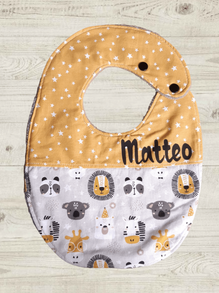 Bavaglino 3 strati, due in cotone e uno impermeabile, garantisce un’alta assorbenza.