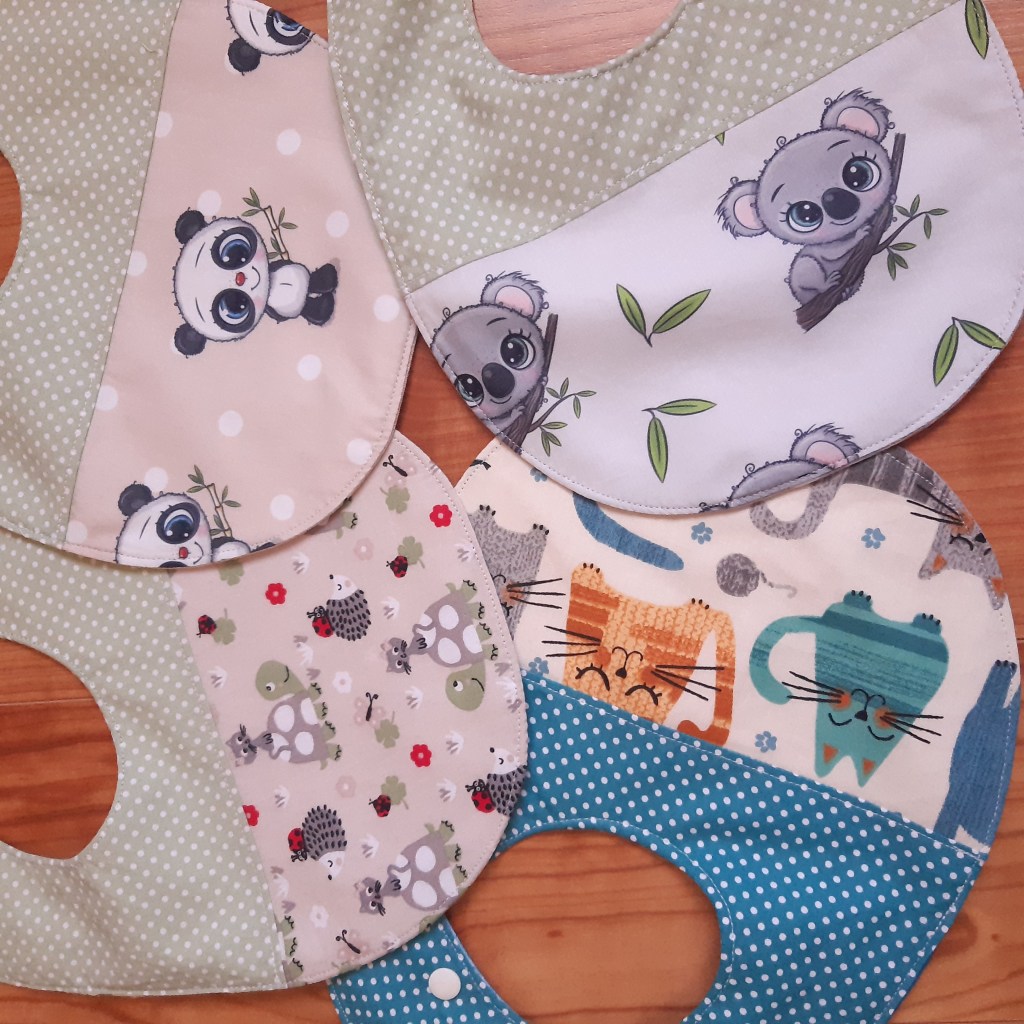 Bavaglino 2 strati, cotone e uno retro in spugna.